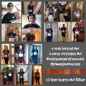 El pasado domingo 19 de abril ha tenido lugar una de las pruebas de marcha nórdica más originales de los últimos tiempos. Y es que dicen que en época de crisis el ingenio se agudiza. Que se lo digan a los amigos del C.D. Landederra, que nos han organizado la prueba «4 horas virtuales de Marcha Nórdica», una manera de practicar marcha nórdica en grupo, pero a distancia. La verdad es que echamos de menos el salir con los amigos y con nuestros bastones en estos tiempos de confinamiento… pero al menos, el pasado domingo no nos sentimos tan solos, pensando que más de 400 nordic walkers estábamos compartiendo nuestra afición y nuestra pasión, «cada uno en su casa,… pero el nordic walking en la de todos»