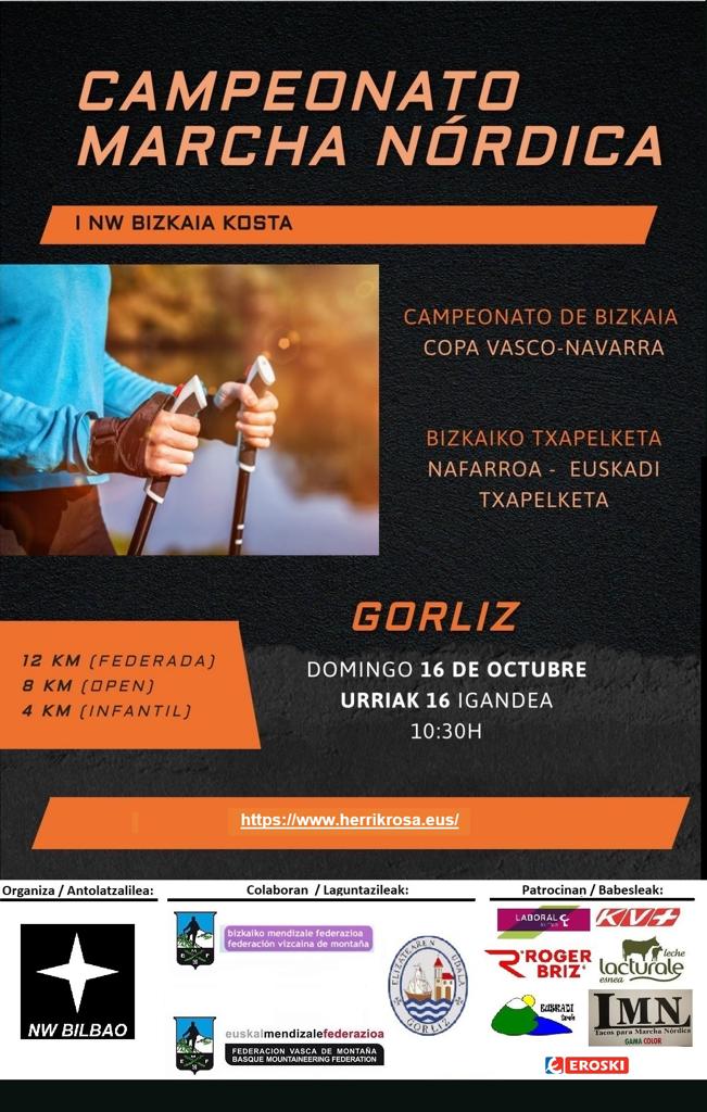 El próximo domingo 16 de octubre, en el club deportivo Ipar Izarra Nordic Walking Bilbao vamos a organizar una prueba de marcha nórdica en la localidad costera de Gorliz. Se realizarán 3 competiciones simultáneas: Copa Vasco-Navarra, Campeonato de Bizkaia y prueba OPEN. Las inscripciones están abiertas en la web de Herrikrosa