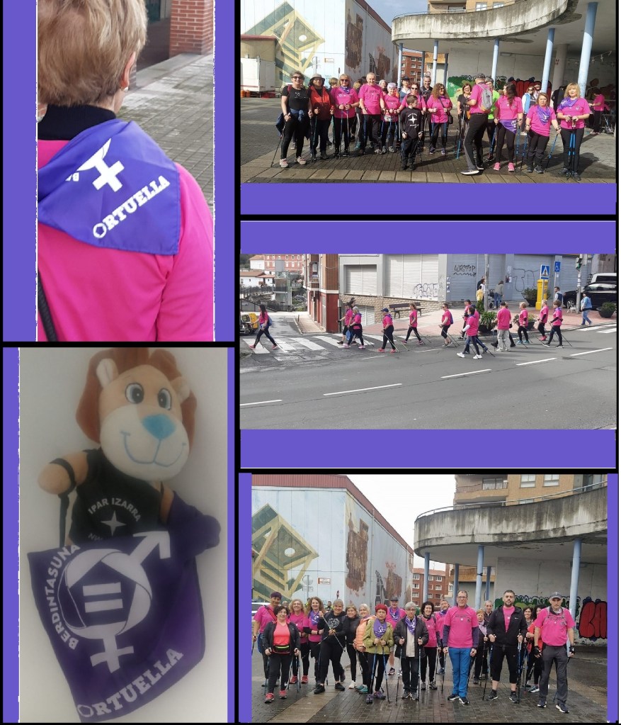 Domingo 12 de Marzo ,me espera un día de vivir nuevas experiencias….Nos dirigimos rumbo a Ortuella para pasar una mañana en buena compañía y disfrutar de una marcha nórdica de 6h para apoyar el día de la mujer organizada por la asociación EMAKUMEON INDARRA ,a la cual ha sido invitado el club IPAR IZARRA NW BILBAO al que pertenece mi marido.