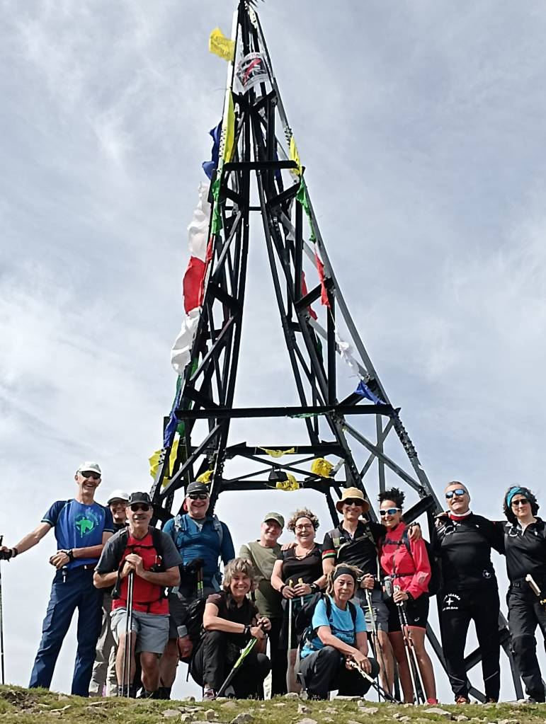 Entre el apoyo que nos dimos mutuamente y la alegría (hasta canciones se oyeron) de ver como pasito a pasito, con todas las paradas necesarias, el “Grupo” avanzaba por las importantes pendientes con piedra suelta, zona boscosa, y la última larga rampa con la vista del la Cruz al fondo.