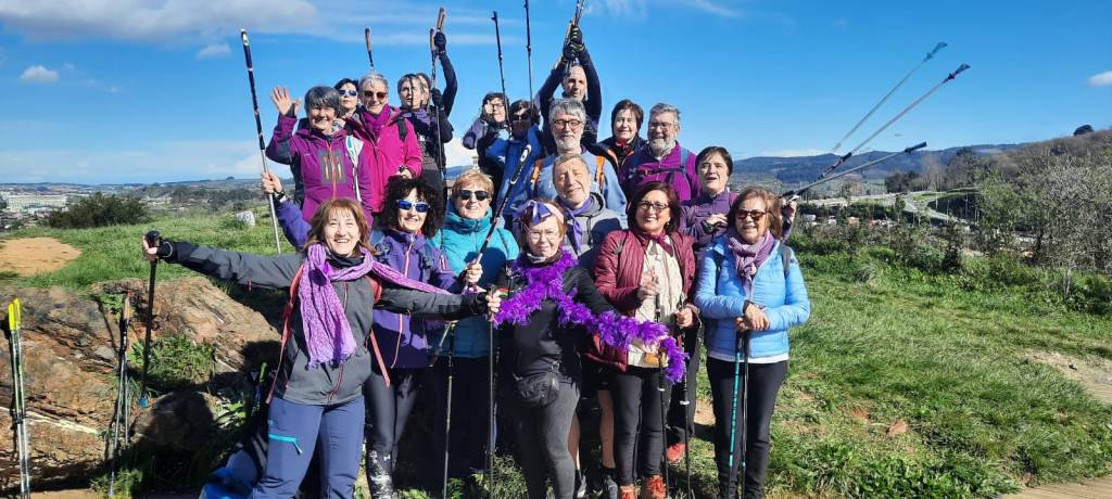Compartida con la asociación Emakumeon Indarra aprovechamos a subir a Serantes también portando atuendos y complementos morados conmemorativos de la jornada.