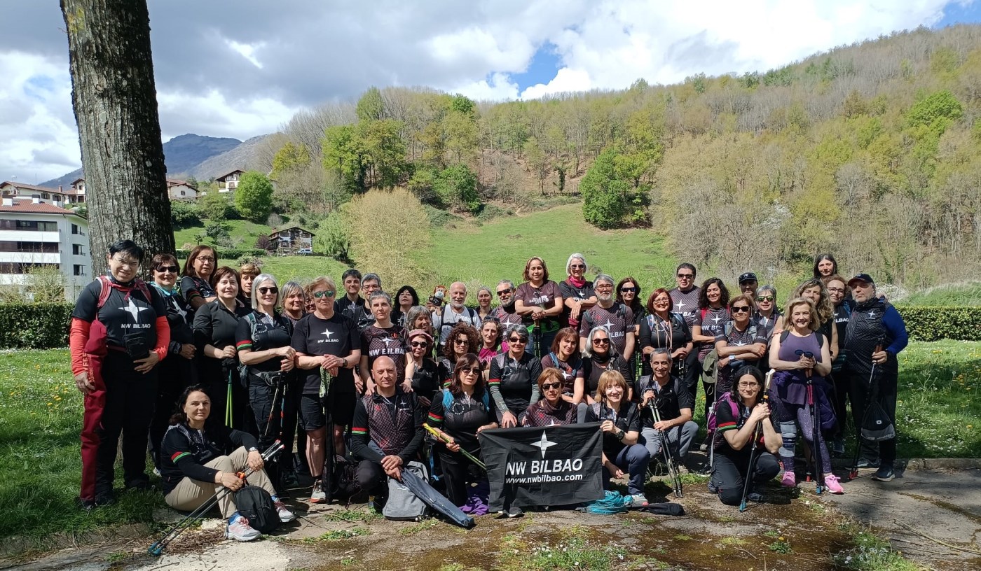 Tod@s, bien con 8 ó bien con 15 kilómetros de marcha nórdica por delante y el objetivo de converger a la hora de comer en Doneztebe-Santesteban.